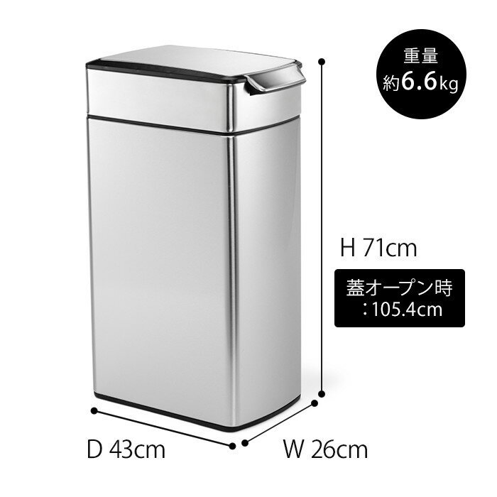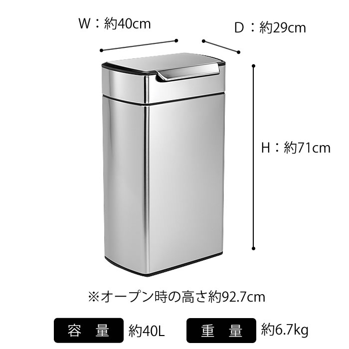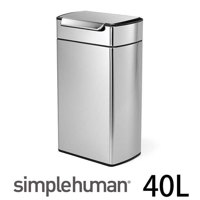 simplehuman シンプルヒューマン ゴミ箱 レクタンギュラータッチバーカン 40L タッチバーカン ステンレス CW2014 シルバー キッチン プッシュ スリム ごみ箱 ダストボックス フィンガープリントプルーフ 分別 横型