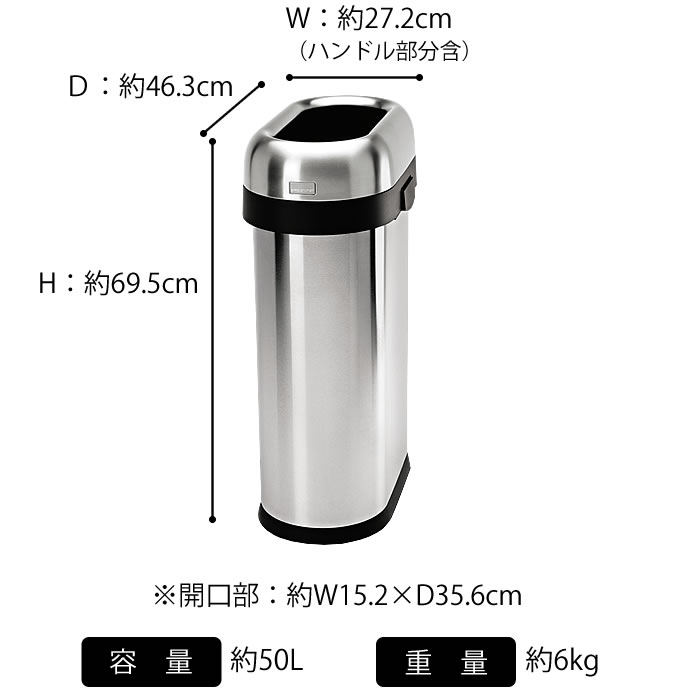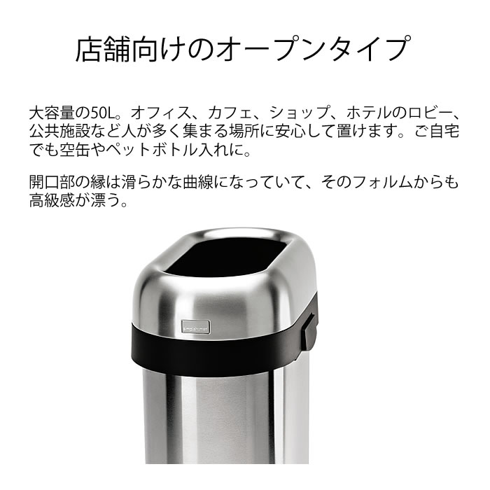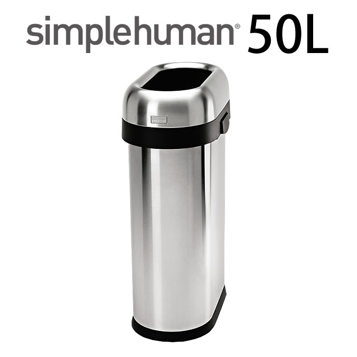 シンプルヒューマン ゴミ箱 simplehuman ステンレス CW1467 スリムオープンカン 50L シルバー フタなし オープンカン 店舗 オフィス ごみ箱 ダストボックス スリム 分別 縦型 北欧