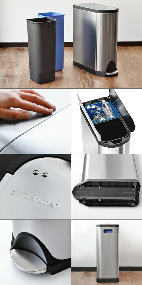 simplehuman 正規販売代理店ゴミ箱 ペダル ふた付き おしゃれ スリム【メーカー直送品】送料無料(沖縄・離島除く)シンプルヒューマン バタフライステップカン 分別タイプ [CW2017]butterfly step can [40L]◇ダストボックス ステンレス