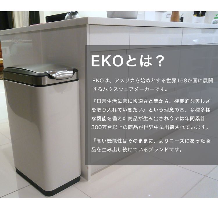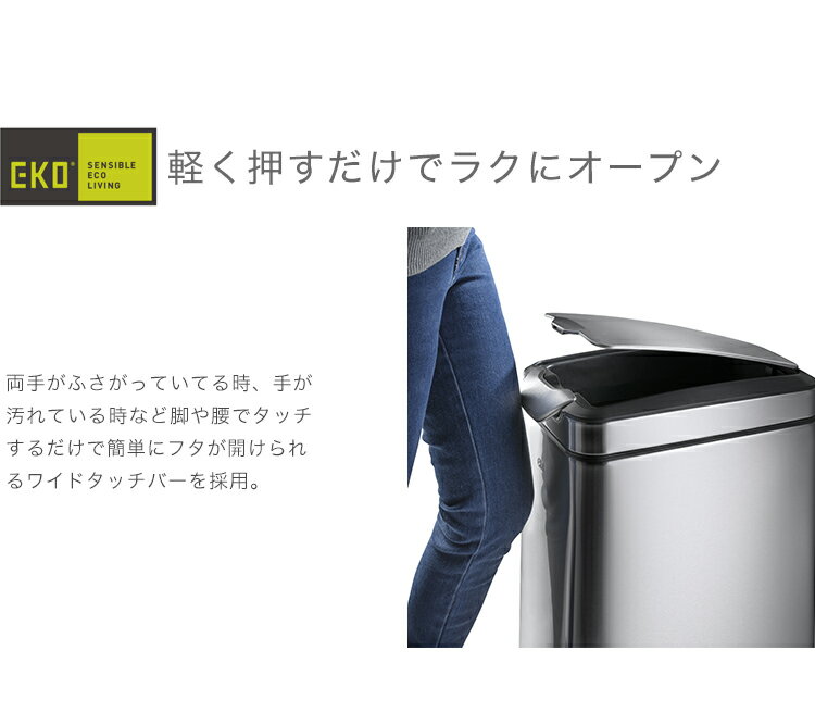 【正規販売店】 EKO ゴミ箱 ティナ タッチビン 30リットル EK9177MT-30L | キッチン ステンレス スリム ふた付き 四角 介護用 ダストボックス ごみ箱 オムツ おむつ 蓋つき ゴミ袋 見えない コンパクト シンプル すき間 ふたつき リビング プッシュ 隙間 密閉 一人暮らし