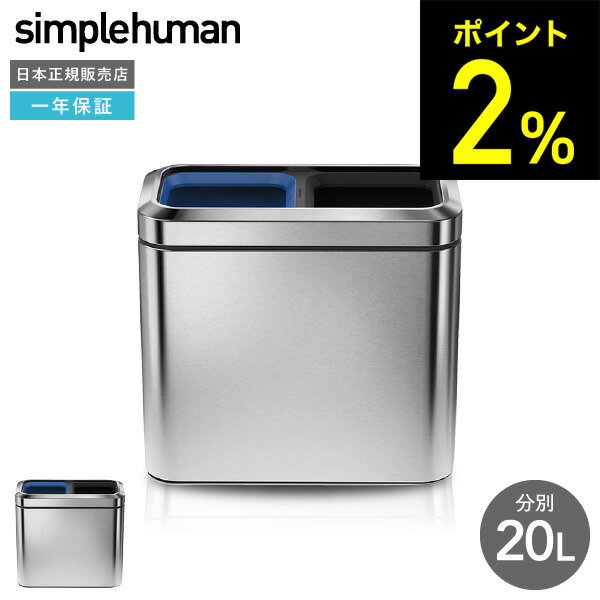 simplehuman シンプルヒューマン 分別 スリムオープンカン 20L (正規品)(送料無料)(メーカー直送)/ CW1470 分別 ステンレス ゴミ箱 ダストボックス デザイン おしゃれ