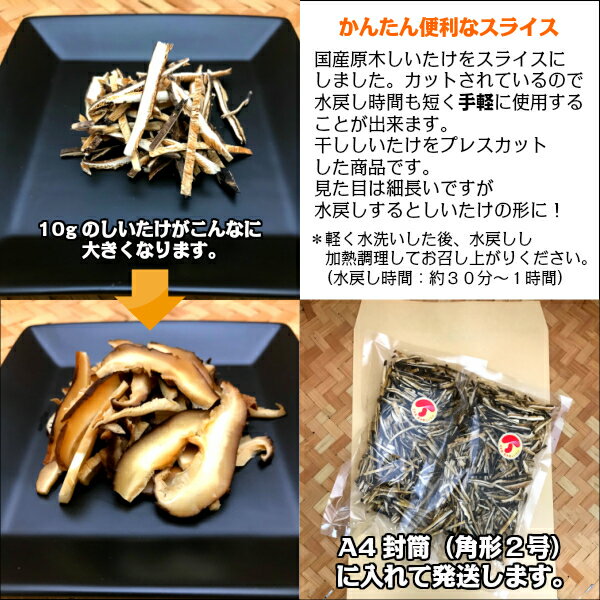 商品説明商品名 国産 干し椎茸 スライス 100g 2個入り 原木栽培 商品規格3mm幅でスライス加工した干ししいたけです。
